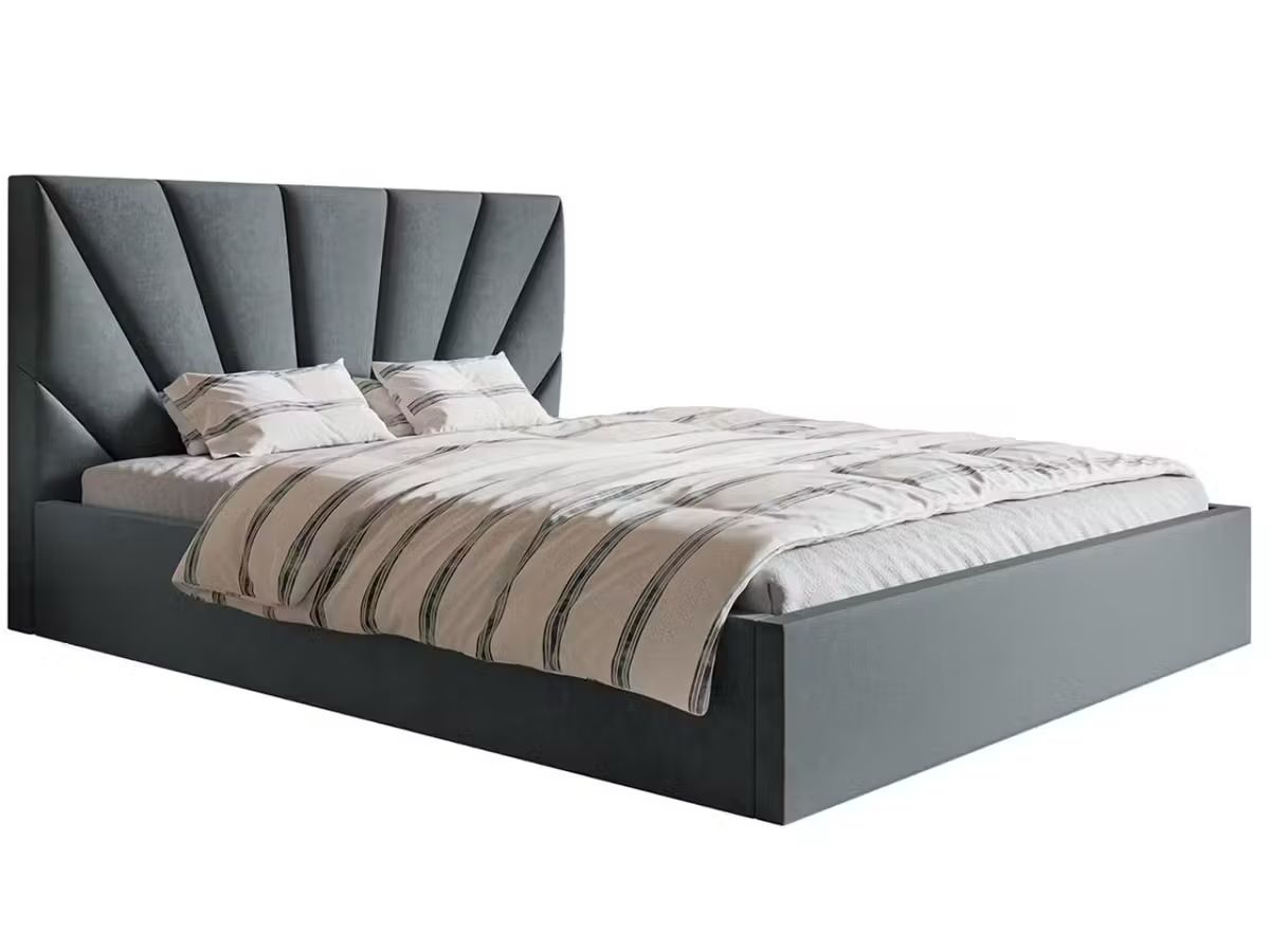 Pat tapitat Cami cu saltea , 180x200 cm, Gri inchis