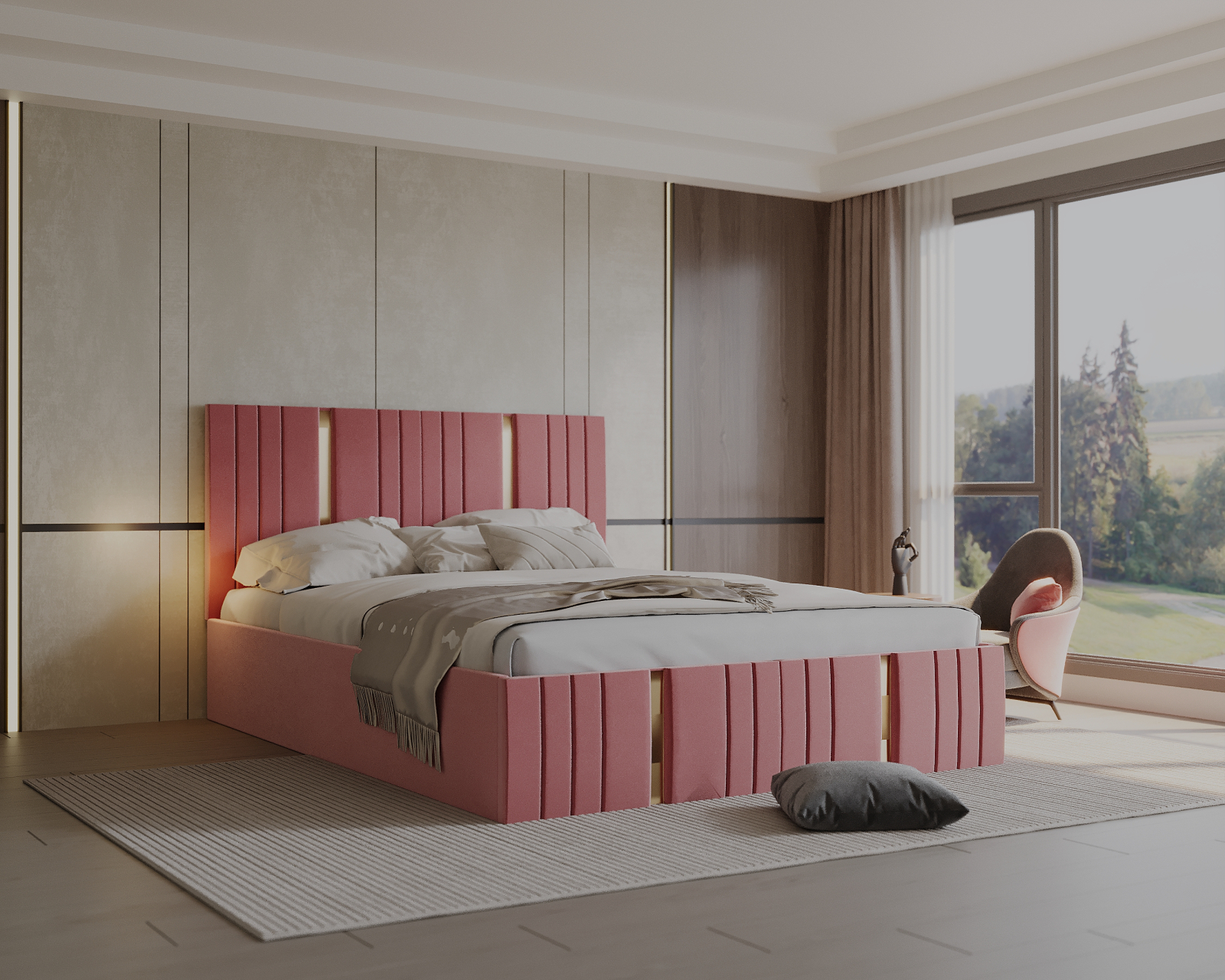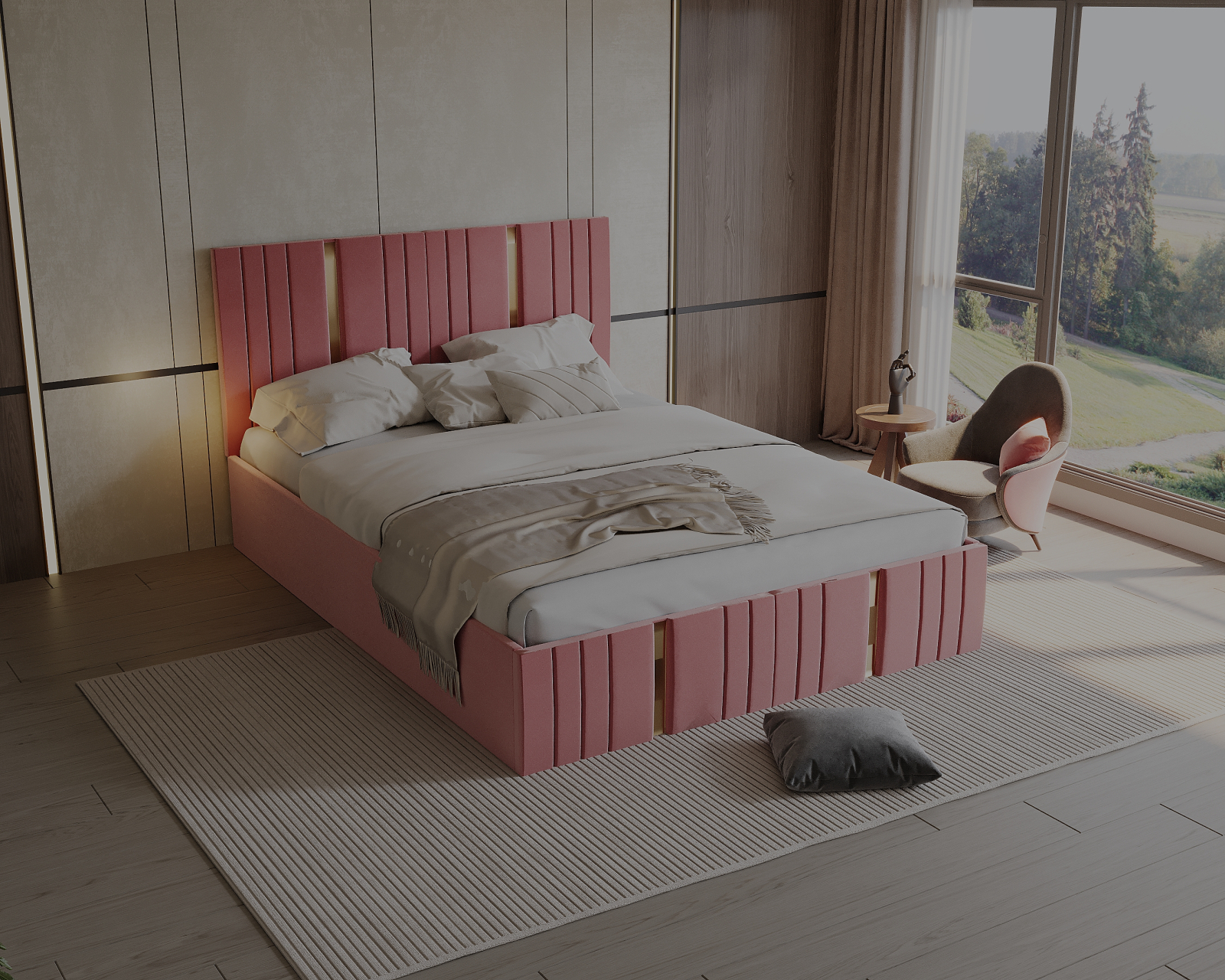 Pat tapitat Sebastian cu saltea , 180x200 cm, Roz